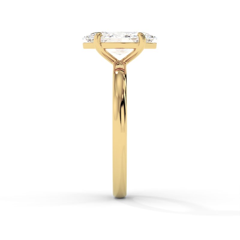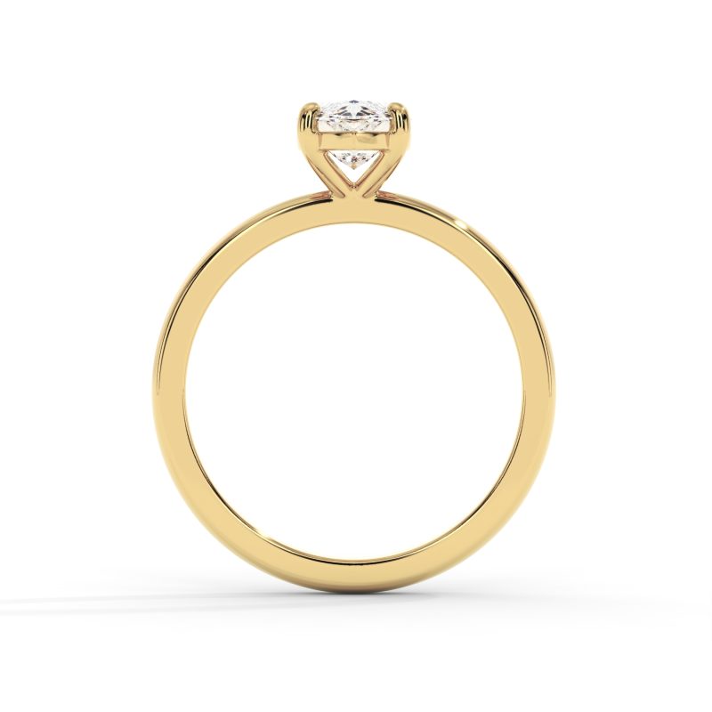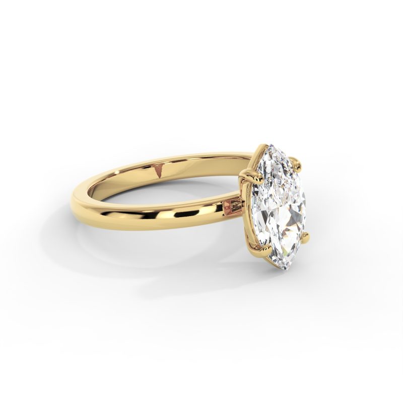טבעת אירוסין סוליטר מינימליסטית המשובצת ביהלום מעבדה בחיתוך מרקיזה במשקל 1.00 קראט בניקיון VS וצבע D-F. העיצוב הנקי והחישוק החלק בזהב 14K מדגישים את צורתו הייחודית של היהלום המרכזי ויוצרים מראה אצילי ועדין.