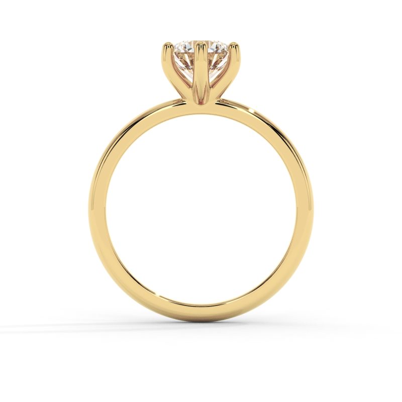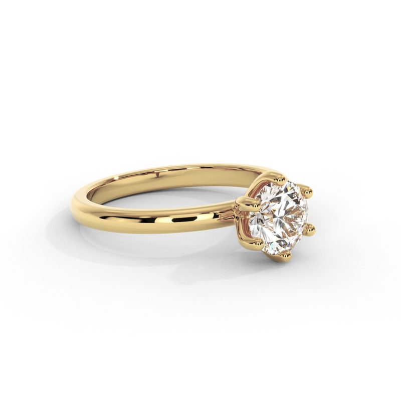 טבעת אירוסין טהורה בעיצוב סוליטר קלאסי, במרכזה יהלום מעבדה עגול במשקל 1.00 קראט בניקיון VS וצבע D-F. העיצוב המינימליסטי בזהב 14K מדגיש את יופיו הטבעי של היהלום המרכזי, כשהחישוק החלק מעניק לטבעת מראה אלגנטי ונקי.