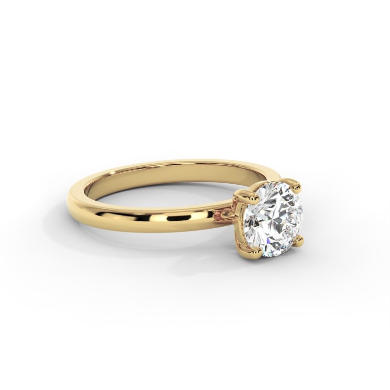 טבעת אירוסין סוליטר מינימליסטית המשובצת ביהלום מעבדה עגול במשקל 1.00 קראט בניקיון VS וצבע D-F בעיצוב קלאסי של 4 שיניים. העיצוב הקלאסי והחישוק החלק בזהב 14K מדגישים את יופיו הטבעי של היהלום ויוצרים מראה נקי ואלגנטי.