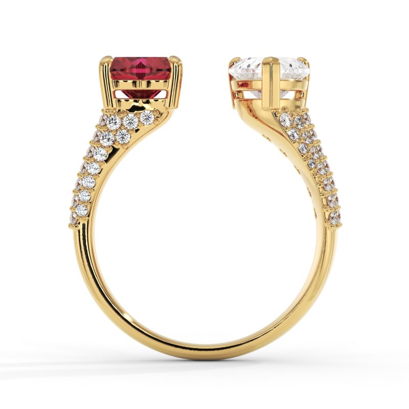 טבעת שני לבבות יהלום מעבדה ורובי 2.30 קראט Romance